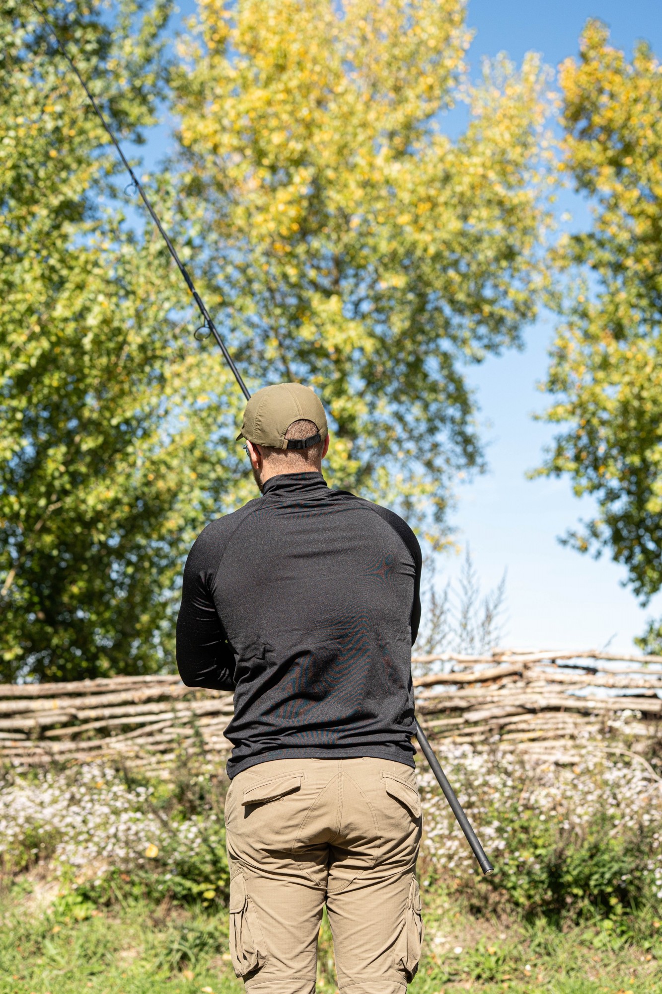 Die gebürstete Jersey-Struktur sorgt für optimale Wärmespeicherung und bleibt dabei bemerkenswert atmungsaktiv. Durch die enganliegende Passform wird überflüssiges Volumen vermieden und die Wärmeeffizienz maximiert. Der hohe Kragen bildet eine effektive Barriere gegen kalte Zugluft, und das Rückenteil verrutscht nicht beim Auswerfen oder Anködern.