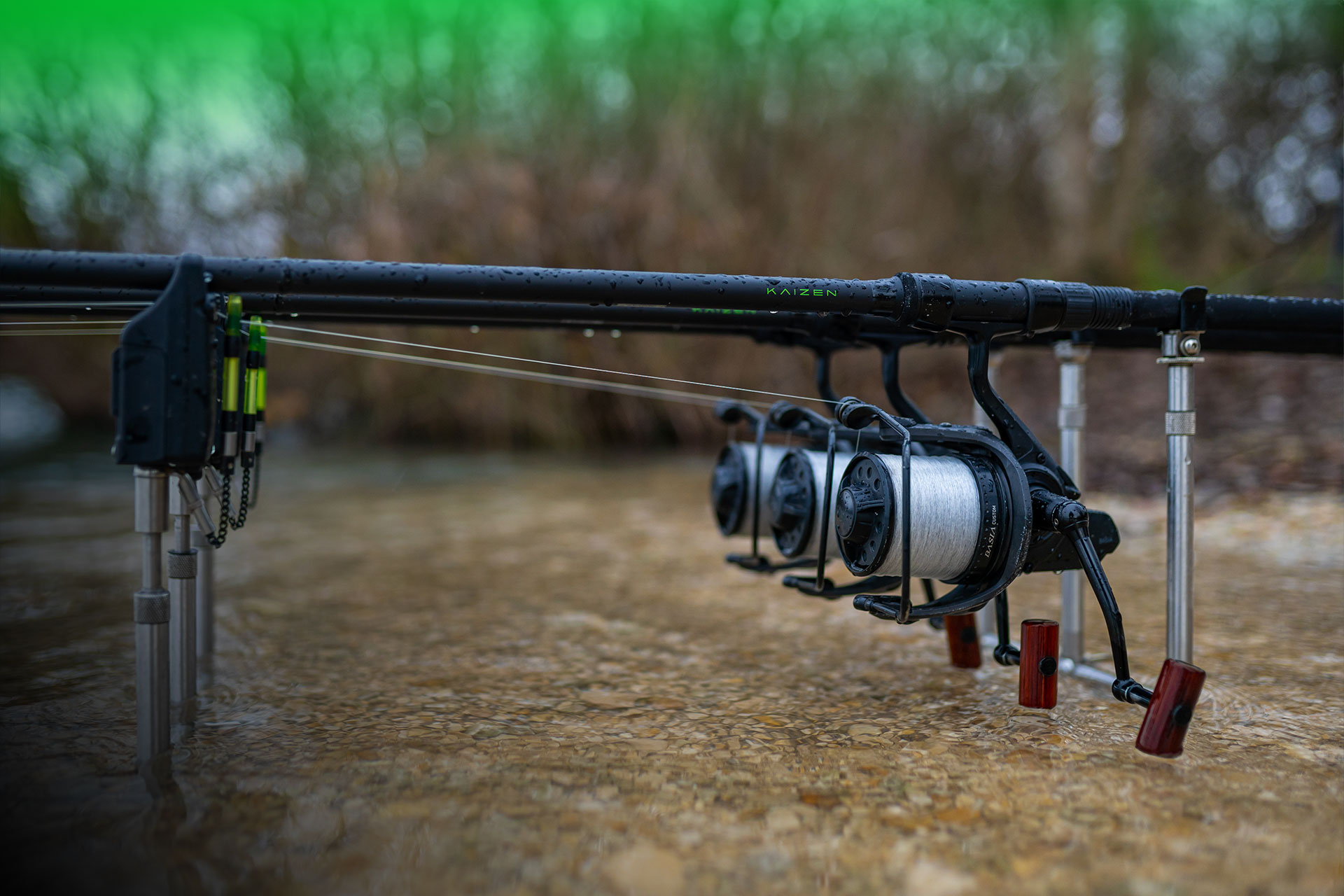 Pêcher avec trois cannes sur le même spot est sans nul doute la spécialité de Pierre.