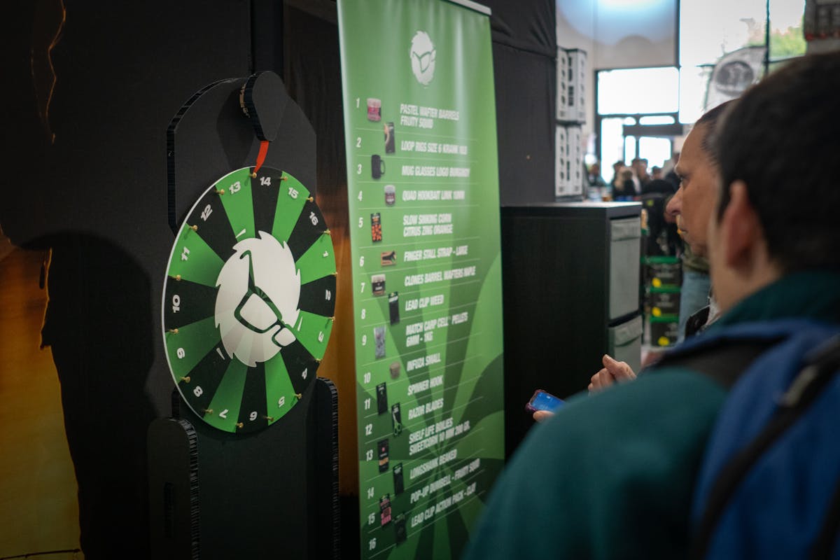 Il funzionamento era semplice ma molto entusiasmante: per ogni 50 euro di prodotti Korda acquistati, i visitatori ricevevano la possibilità di girare la ruota e provare a vincere uno dei numerosi premi messi in palio. Tra accessori indispensabili per il carp fishing e prodotti Korda di alta qualità, ogni giro rappresentava un’occasione concreta per arricchire la propria attrezzatura e vivere un momento di puro divertimento.