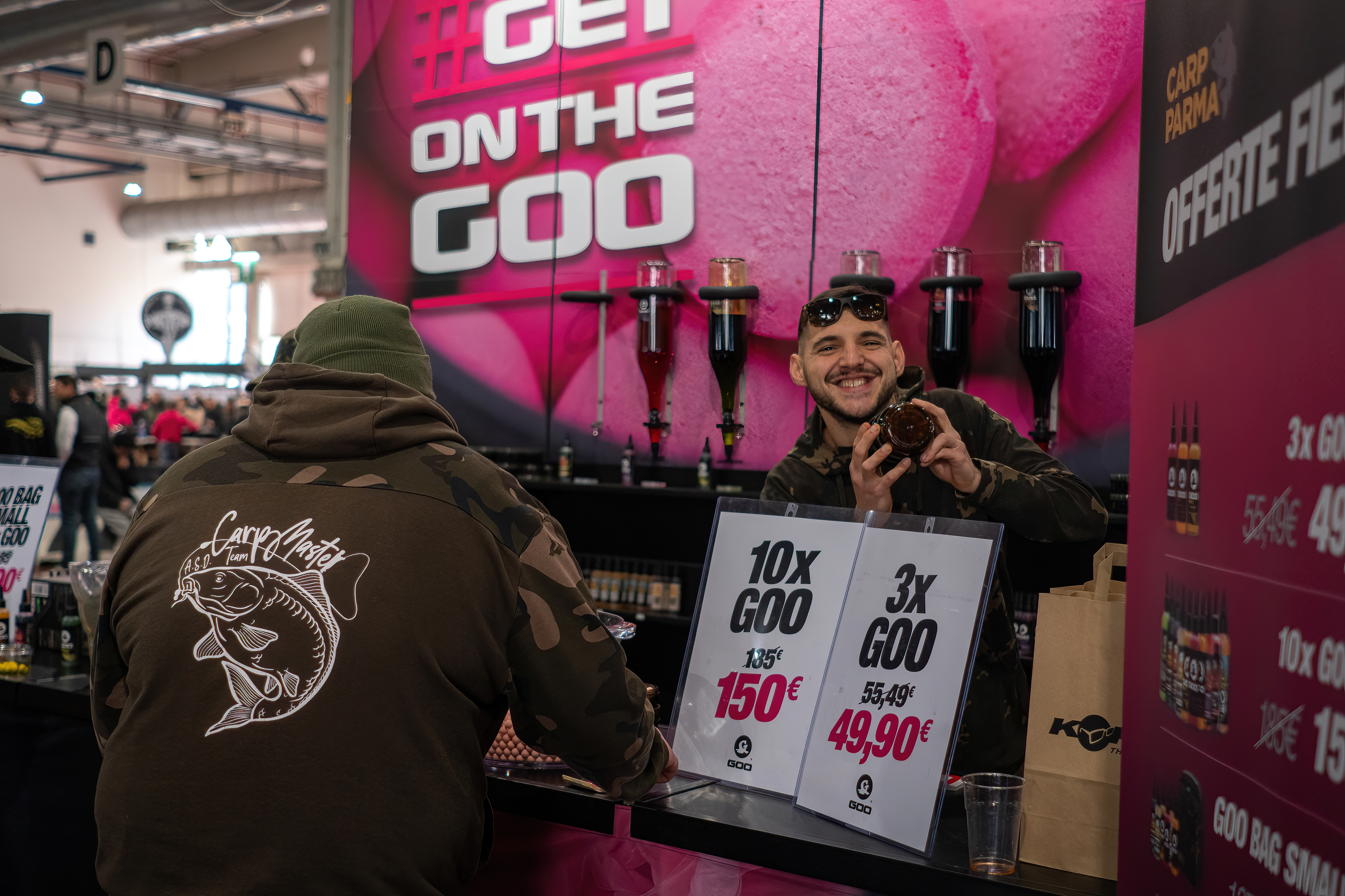 Accanto a loro, l’immancabile Goo Bar ha offerto un’esperienza unica e personalizzata: Gianluca Leporini e Patrick Ridolfo erano a disposizione per “spillare” i vostri Goo preferiti direttamente nelle pop-up scelte, permettendo a ogni carpista di creare combinazioni personalizzate e ottimizzare così l’attrattività delle proprie esche.