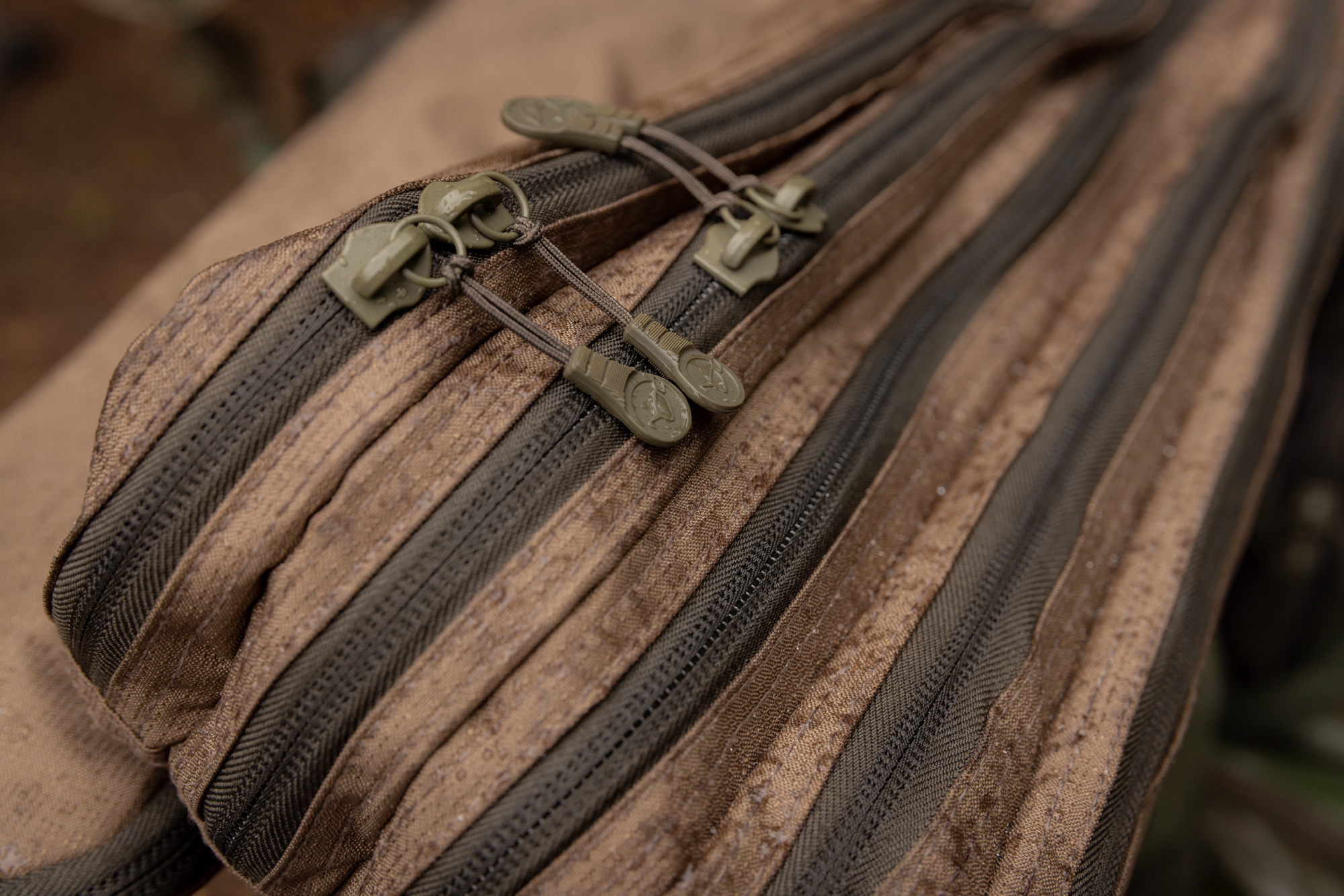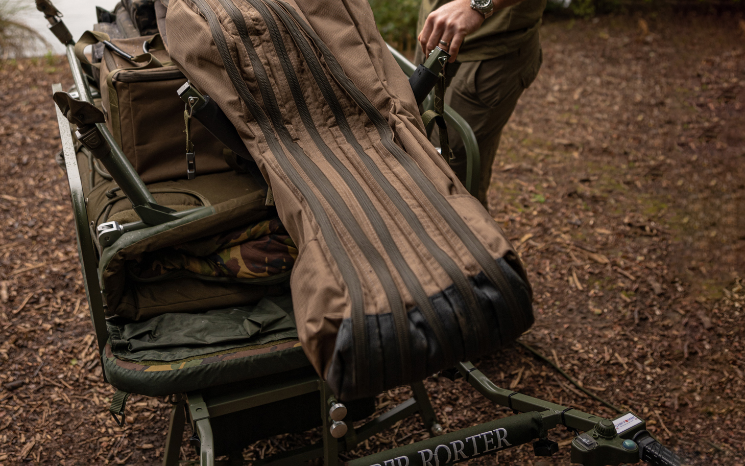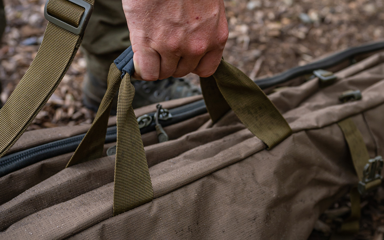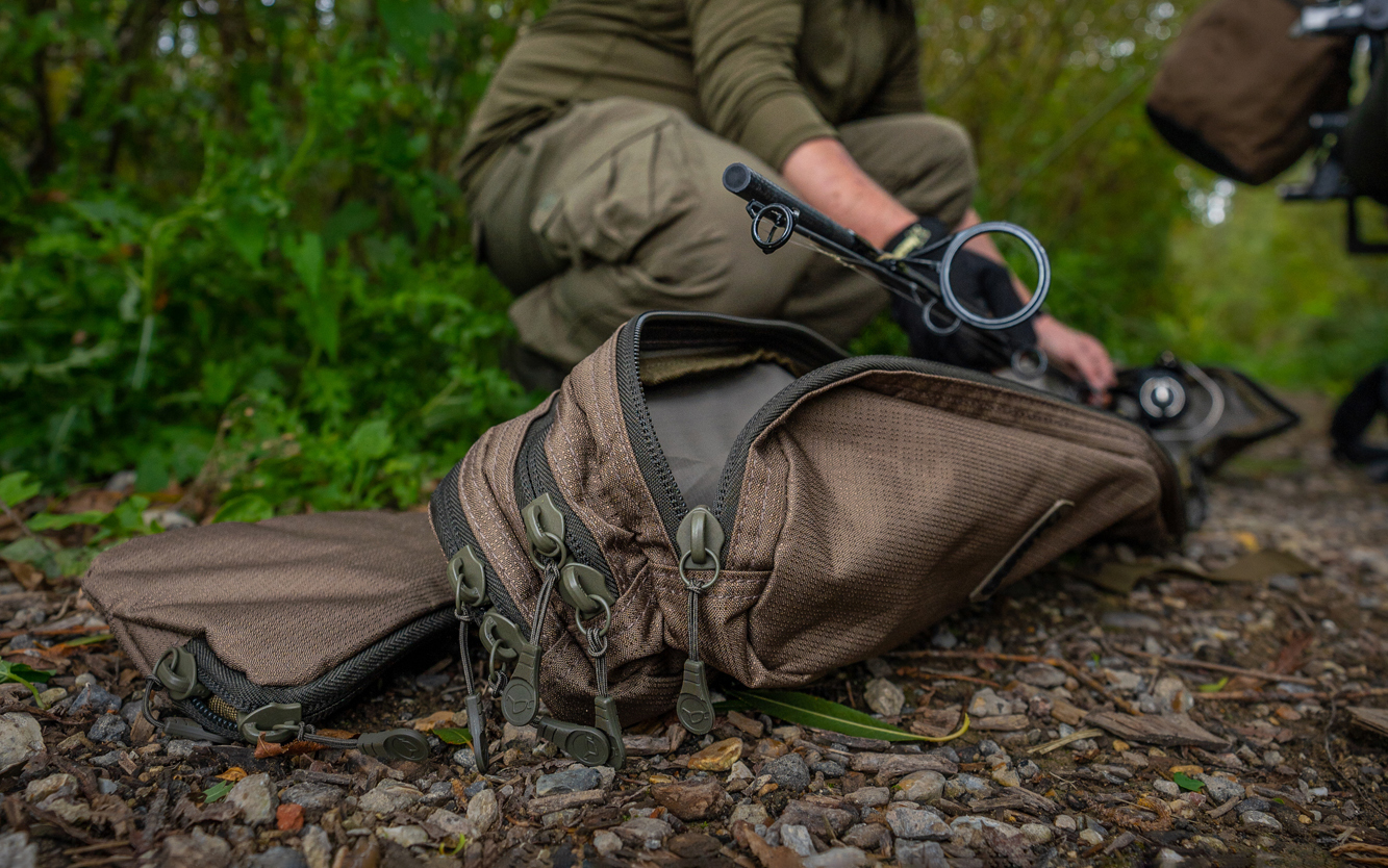 Both the rod bags and the single sleeves have a pocket and strap system that allows landing nets, weigh slings throwing sticks, and similar to be quickly attached to them when in transit.