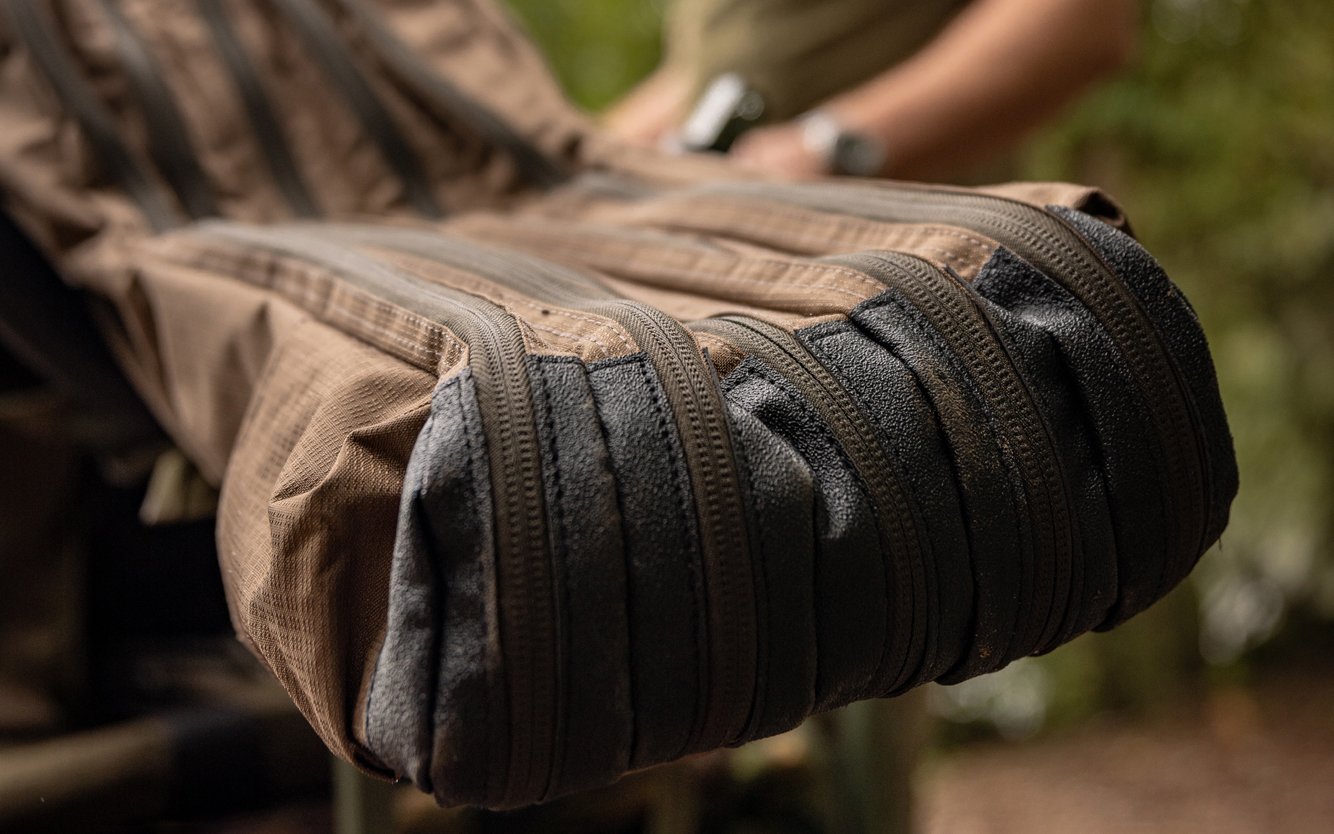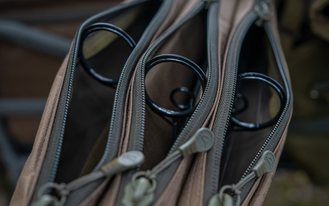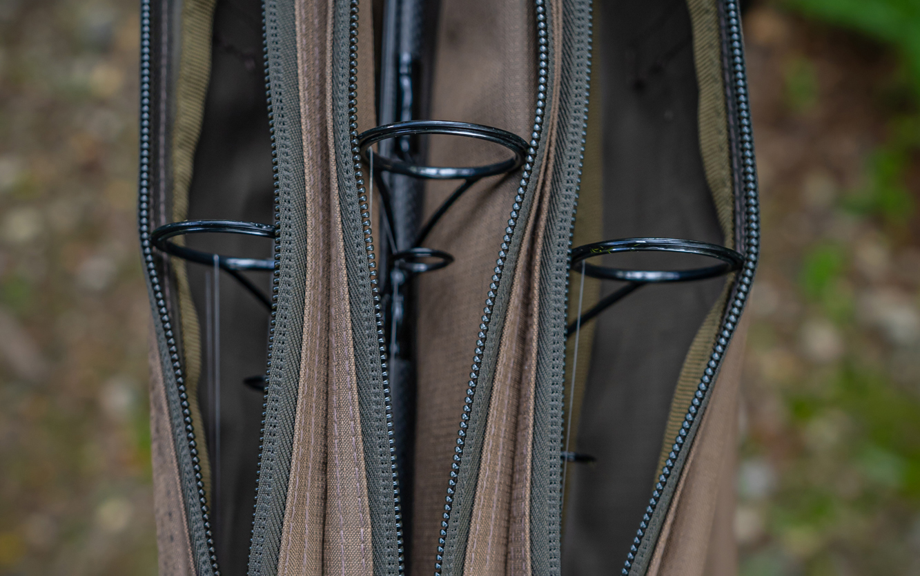 The three-up, two-down, layout also saves dramatically on space, whilst still offering plenty enough protection for 50mm butt rings, thanks to the fact that each rod is zipped into its own compartment – hence the name Divide.