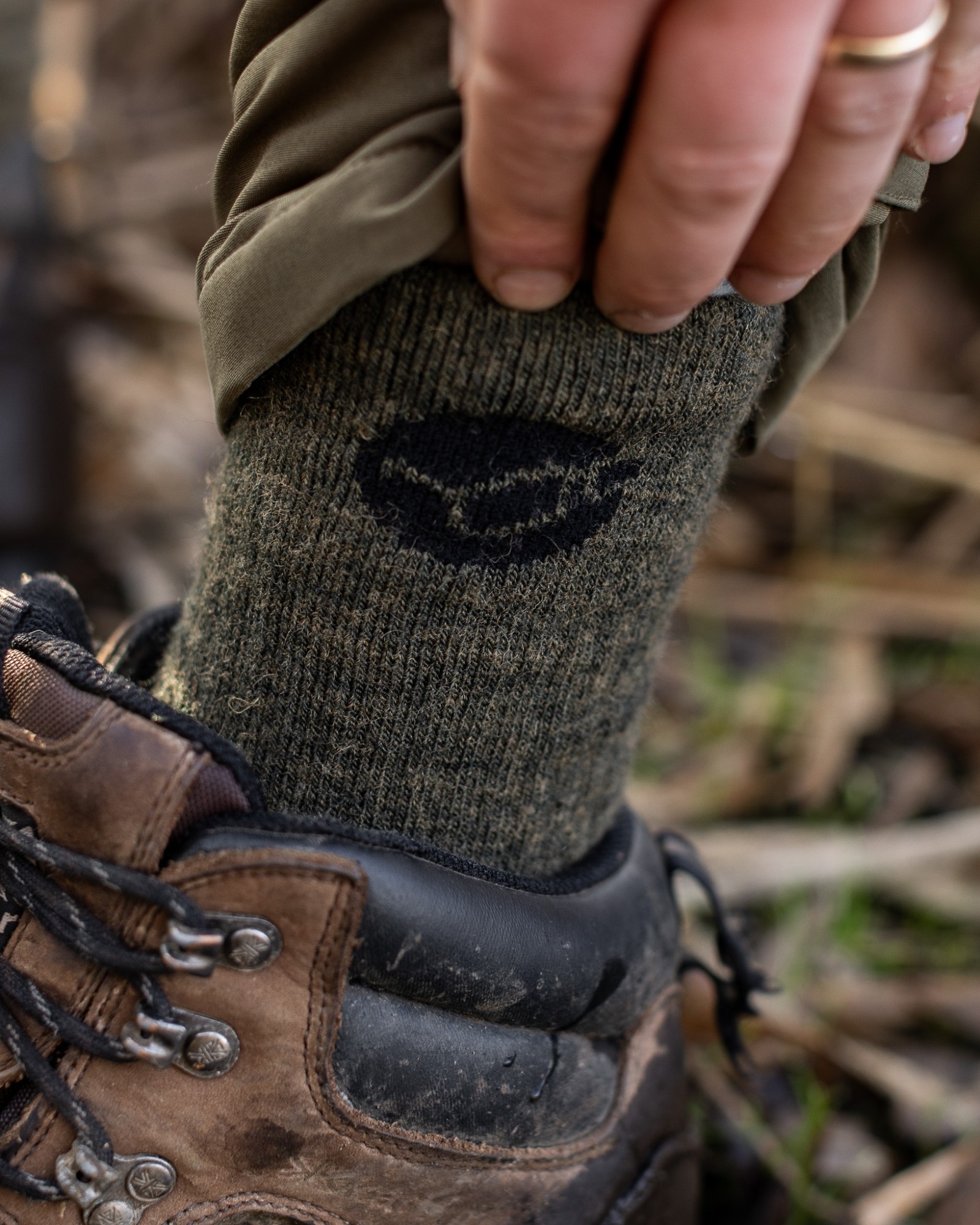 Merino wool is a great material to make socks from as it not only helps to regulate body heat so as to help prevent sweating, but also wicks moisture away from the skin if you do sweat at all. This Merino blend material traps pockets of air which will help keep your feet warm in even the harshest of conditions, plus they have the advantage that even if they become damp they still maintain their insulating qualities, which is ideal when you are out on the bank in all weathers and if your footwear leaks at all. The material also has anti-bacterial properties. The toes and heels are shaped such that the socks will stay in place on your feet and they come far enough above your ankle that your trousers won’t ride up above the top of them. They come in a choice of black or olive, and in size UK 7-9 or UK 10-12.